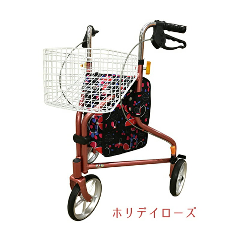 歩行補助車 街乗りトライウォーカー ホリデイローズ TR-62RO カゴ付き 折りたたみ 敬老の日に 3輪 イJ 代引不可 up