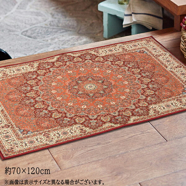 【ポイント10倍】玄関マット ウィルトン織 キリム柄 【約70×120cm レッド】 〔ベッドサイド用 ソファー前用〕