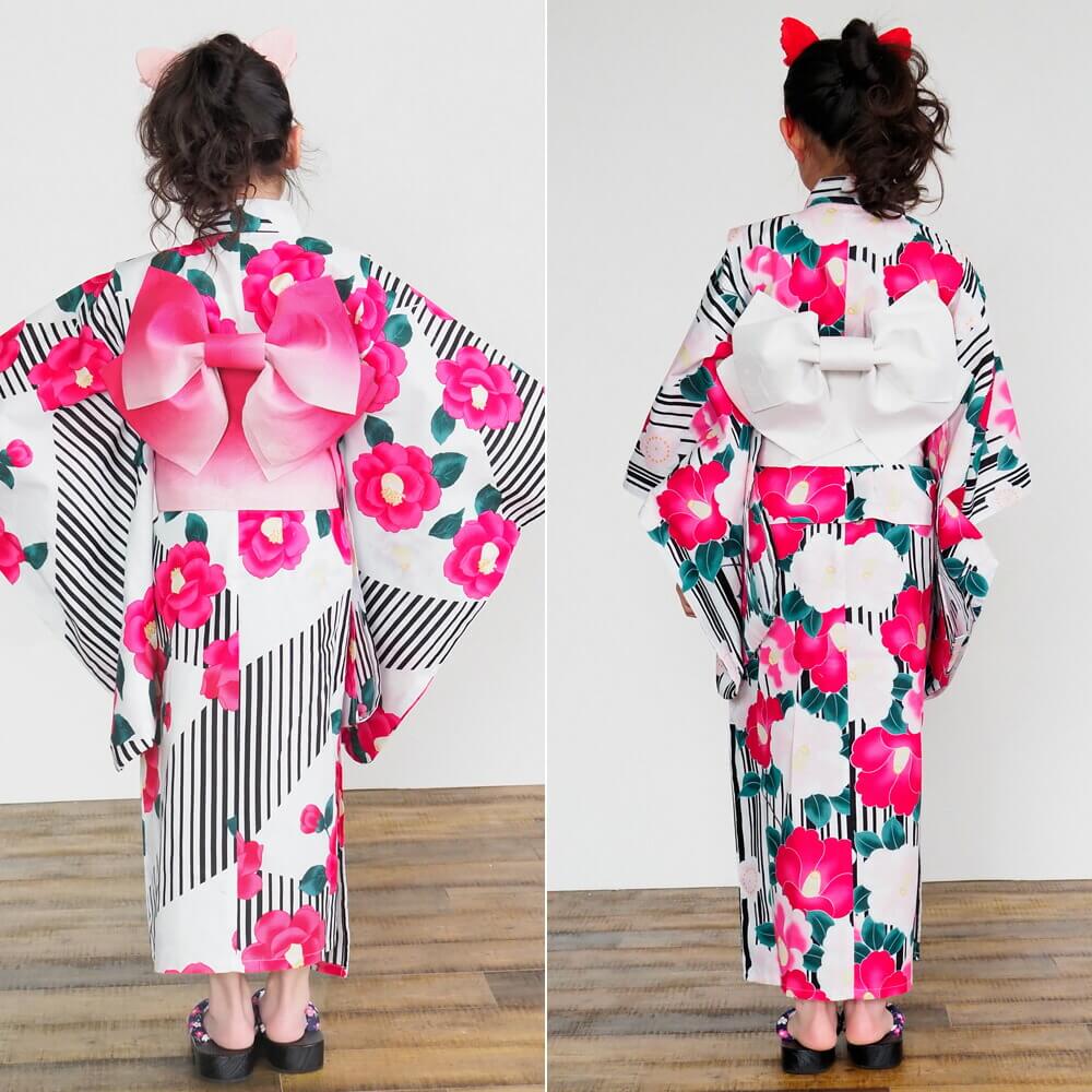 作り帯 つくり帯 浴衣帯 子供用 付け帯 簡単帯 つくり帯 ワンタッチ 着付け帯 グラデーション 赤 ピンク 白 ホワイト 2色かわいいレトロ